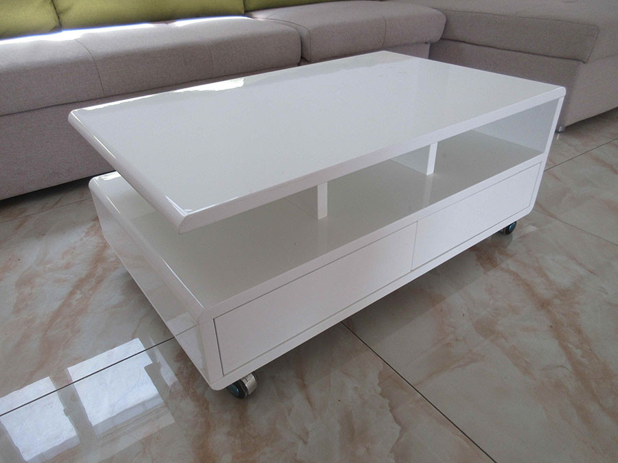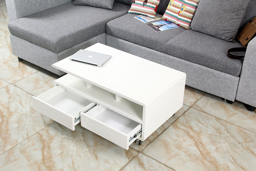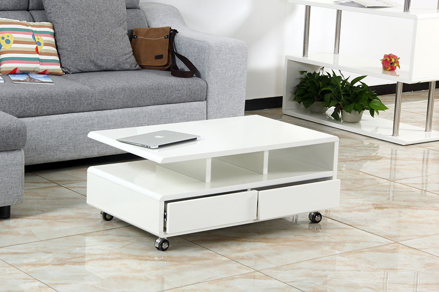 Klubska mizica Jena je na voljo v beli barvi, visokega sijaja. Klubska mizica je izdelana iz kvalitetnega MDF materiala in ima dva praktična predala.