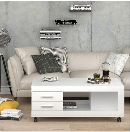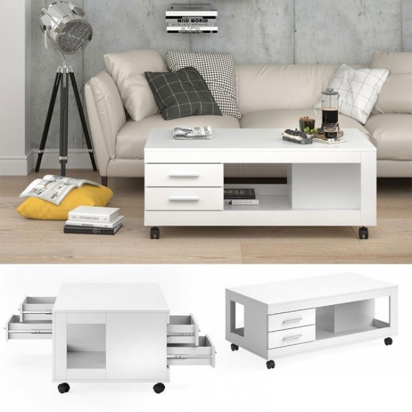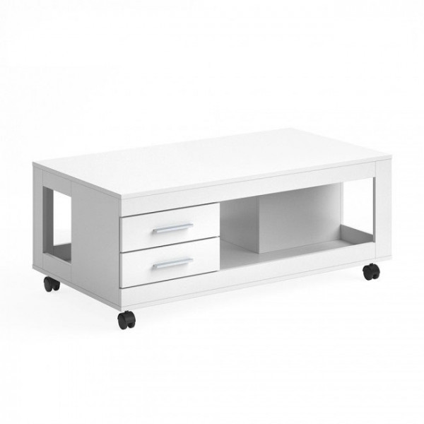 Klubska mizica LOCK je praktična klubska mizica, ki je dobavljiva v beli barvi. Mizica ima na vsaki strani dva predala v katere boste lahko shranili veliko stvari. Mizica ima v sredini eno poličko. Mizica je na koleščkih, kar vam omogoča lažje premikanje po prostoru.