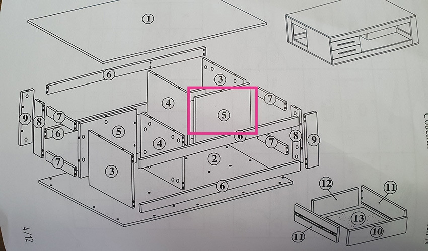 Mizica je bila montirana, ampak ni bila uporabljena. Na elementu 5 ima tudi razpoko na elementu. Slike poškodb v galeriji.