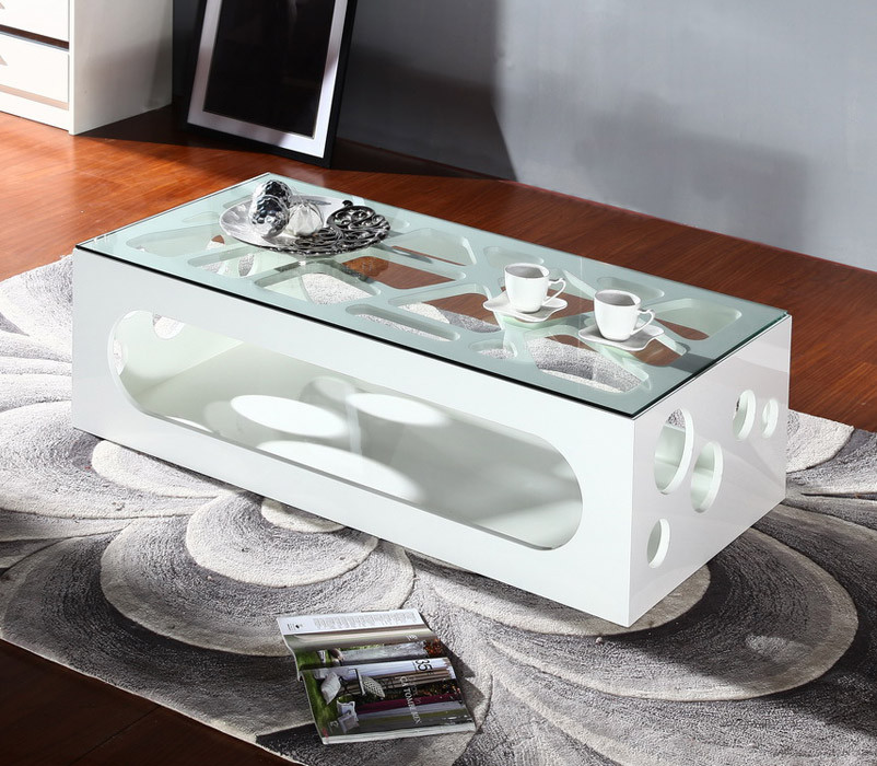 Klubska mizica Nana je bela mizica modernega dizajna, ki se bo odlično podala v vsak dom. Mizica je izdelana iz MDF materiala in kaljenega stekla.