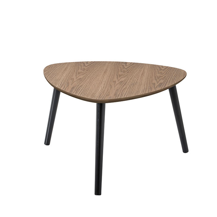 Klubska mizica NOMAD M je miza trikotne oblike v barvi hrasta. Plošča mizice je iz MDF debeline 18 mm. Noge so v črni barvi. Oglejte si še ostale klubske mize iz tega programa.
