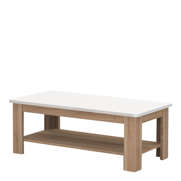 Okvir in plošča klubske mizice sta narejena iz MDF materiala (22 mm) v barvni kombinaciji nebraska hrast in bela. Polica je narejena iz oplemenitene iverne plošče (18 mm).