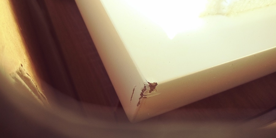 Mizica je poškodovana (slike poškodb v galeriji) in zgornja plošča je malo majava!