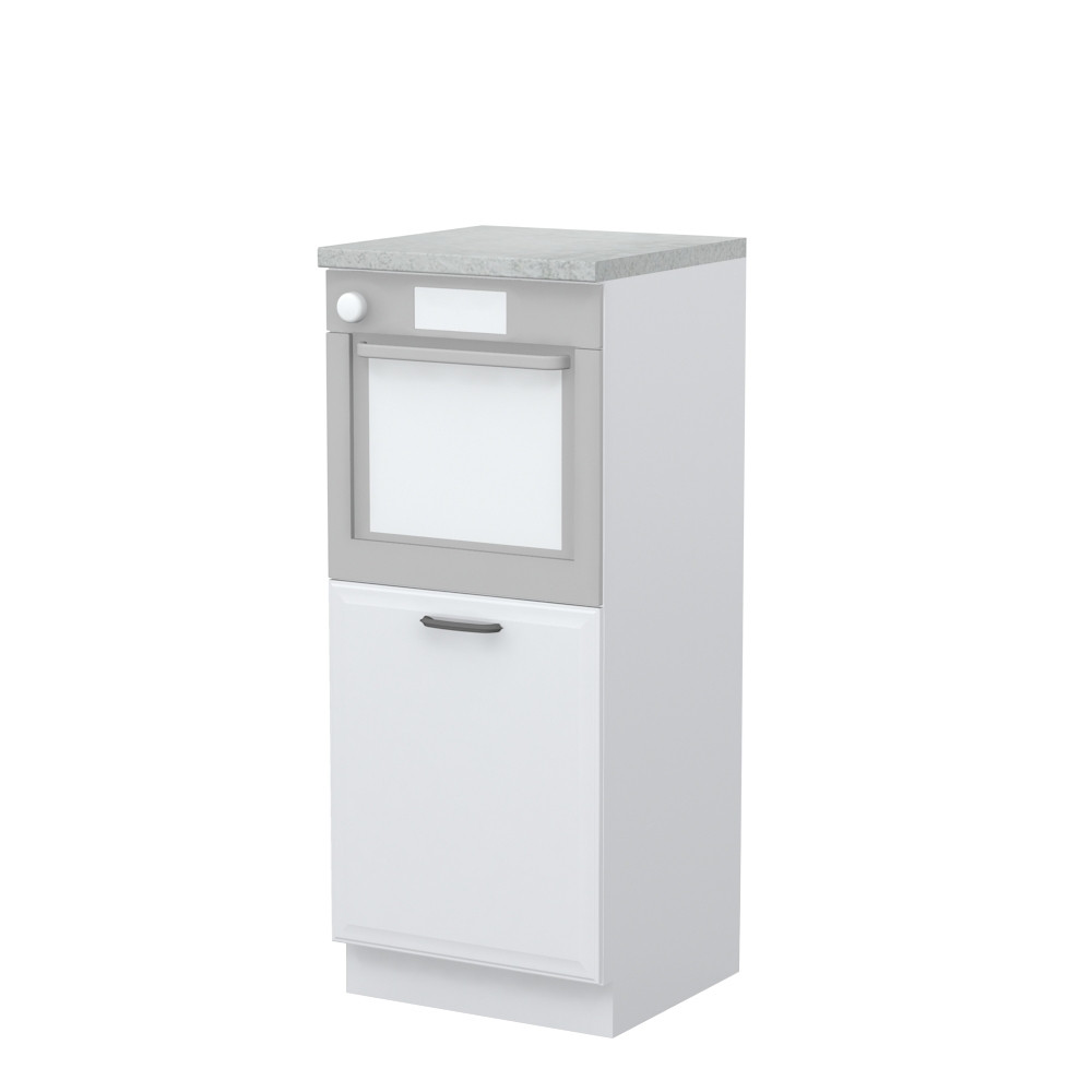 Kombinirani element za kuhinjo EVIA je razdeljen na manjšo omarico z vratci in polico ter na del, v katerega se vstavi vgradna pečica. Omarica ima funkcijo tihega zapiranja, ki omogoča lažjo uporabo. Na voljo je v svetli barvi sive perle, ki se lepo poda v vsak dom in s katerokoli barvo!