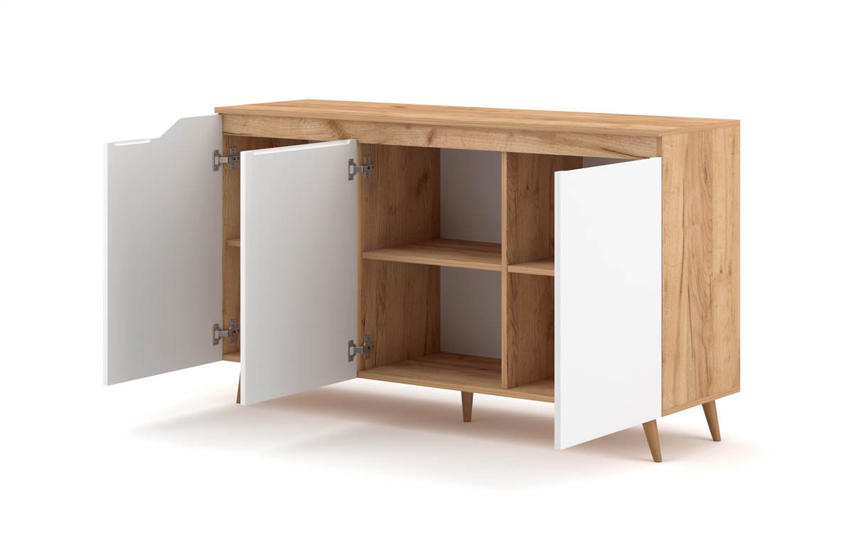 Prefinjena komoda BENGAZI je oblikovana v pristnem skandinavskem stilu in je prava izbira za tiste, ki si želijo čistih linij, funkcionalnosti in minimalistične lepote. Komoda poudarja preprostost, za katero je značilen skandinavski dizajn.