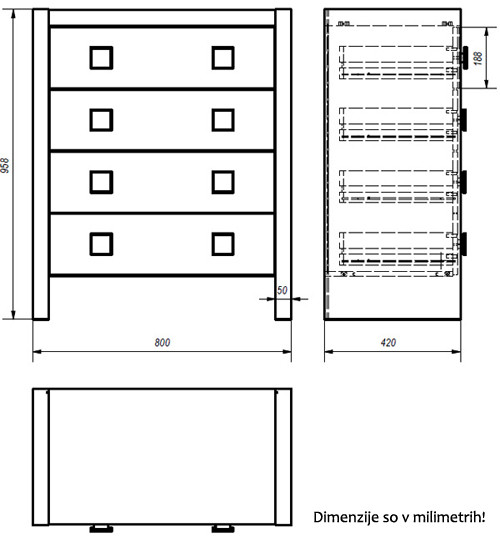 Komoda DIANA II je atraktivnega dizajna v beli barvi v kombinaciji s črnim steklom.