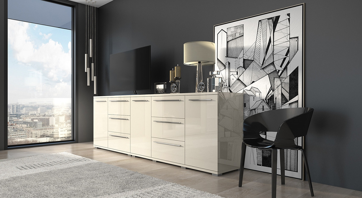 Pohištveni izdelki v visokem sijaju v vaš dom prinesejo pridih elegance in prefinjenosti. Izdelki linije Kalla Piano so na voljo v beli ali bež barvi v visokem sijaju, zato je vaš dom z njimi videti svetlejši in čistejši. Primerni so za vse, ki si želijo osvetliti svoj bivalni prostor in ga modernizirati. K elegantnemu videzu pripomorejo tudi kromirane ročke.
