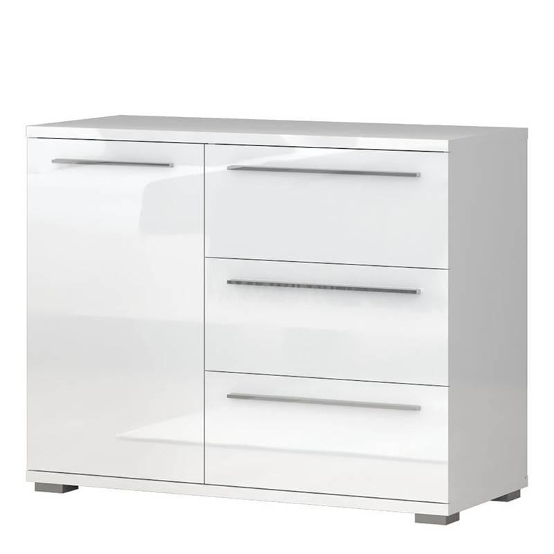 Komoda Kalla Piano vam nudi dragoceni dodatni prostor za shranjevanje vaših oblačil, modnih dodstkov, posteljnine in drugih željenih predmetov saj vsebuje tri predale in ena vratca, za katerimi sta dve polici. Na voljo je v beli in bež barvi v visokem sijaju. Ima funkcijo tihega zapiranja, ki prepreči hitro obrabo pohištva. Izdelana je iz oplemenitene iverne plošče, vsi vidni deli komode so lakirani z UV lakom, zato je komoda bolj odporna proti poškodbam. Je del kolekcije spalnic PIANO, oglejte si še ostale artikle tega programa!