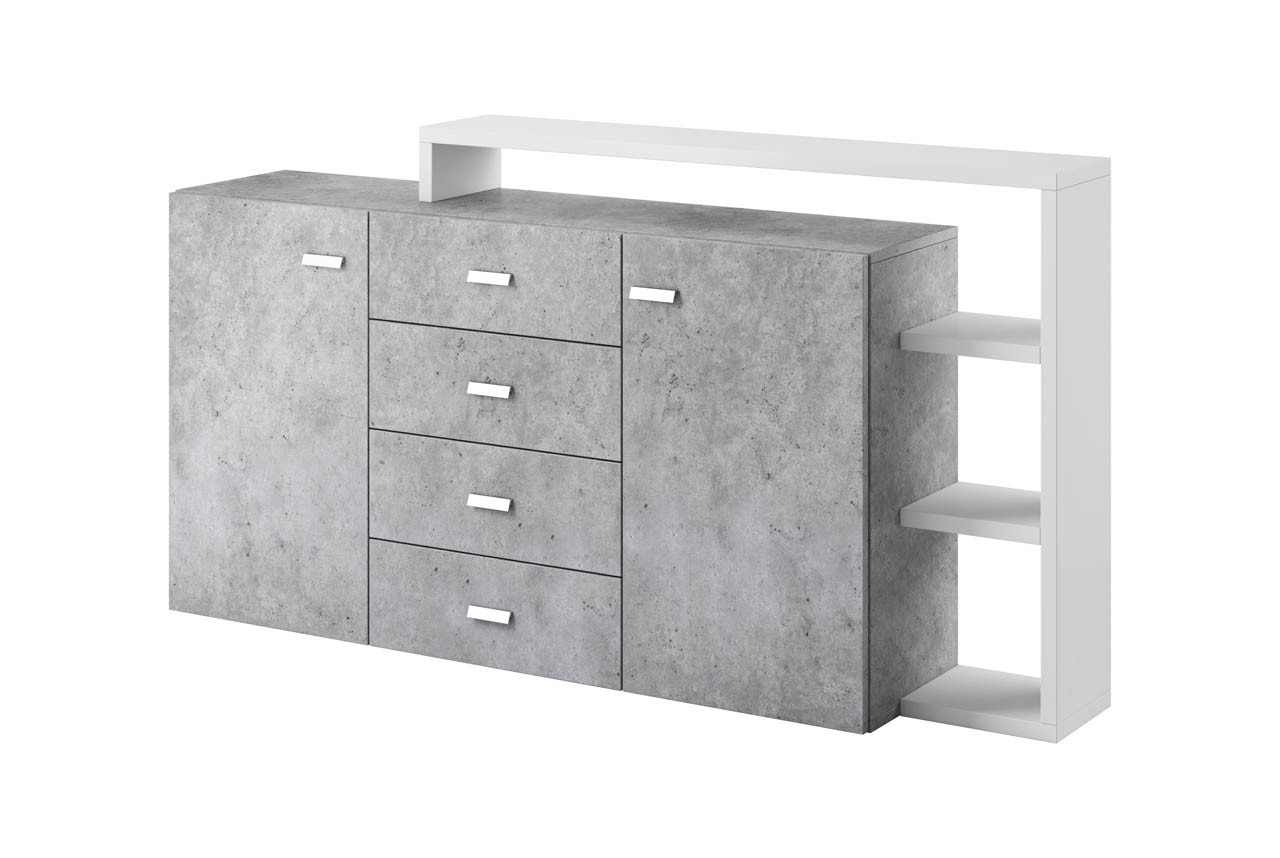 Privoščite svoji dnevni sobi prostorno in funkcionalno komodo LUCY, ki vam nudi obilo prostora za shranjevanje revij, družabnih iger, raznih papirjev in drugih poljubnih predmetov. Komoda je razdeljena na 4 predale in dvoje vratc, poleg tega vam pa nudi tri odprte police na katere lahko odložite razne knjige, revije in dekoracije katere želite imeti na vidnem mestu.