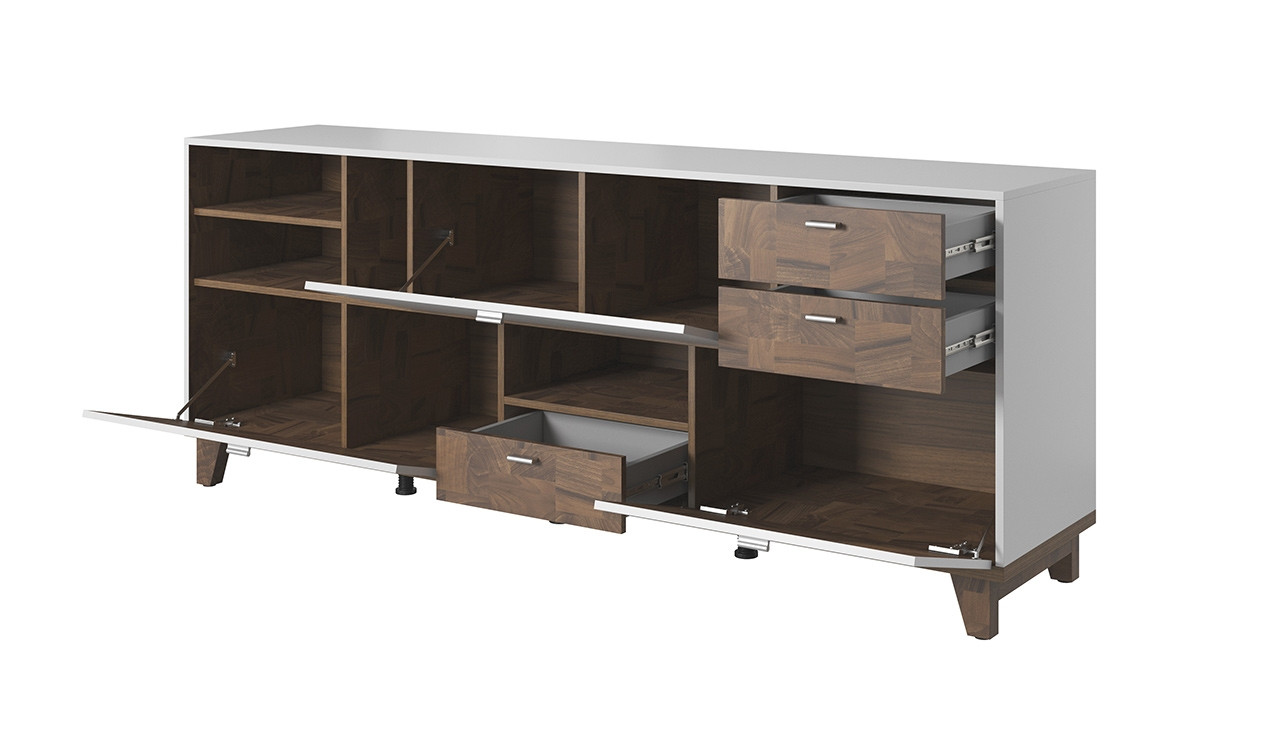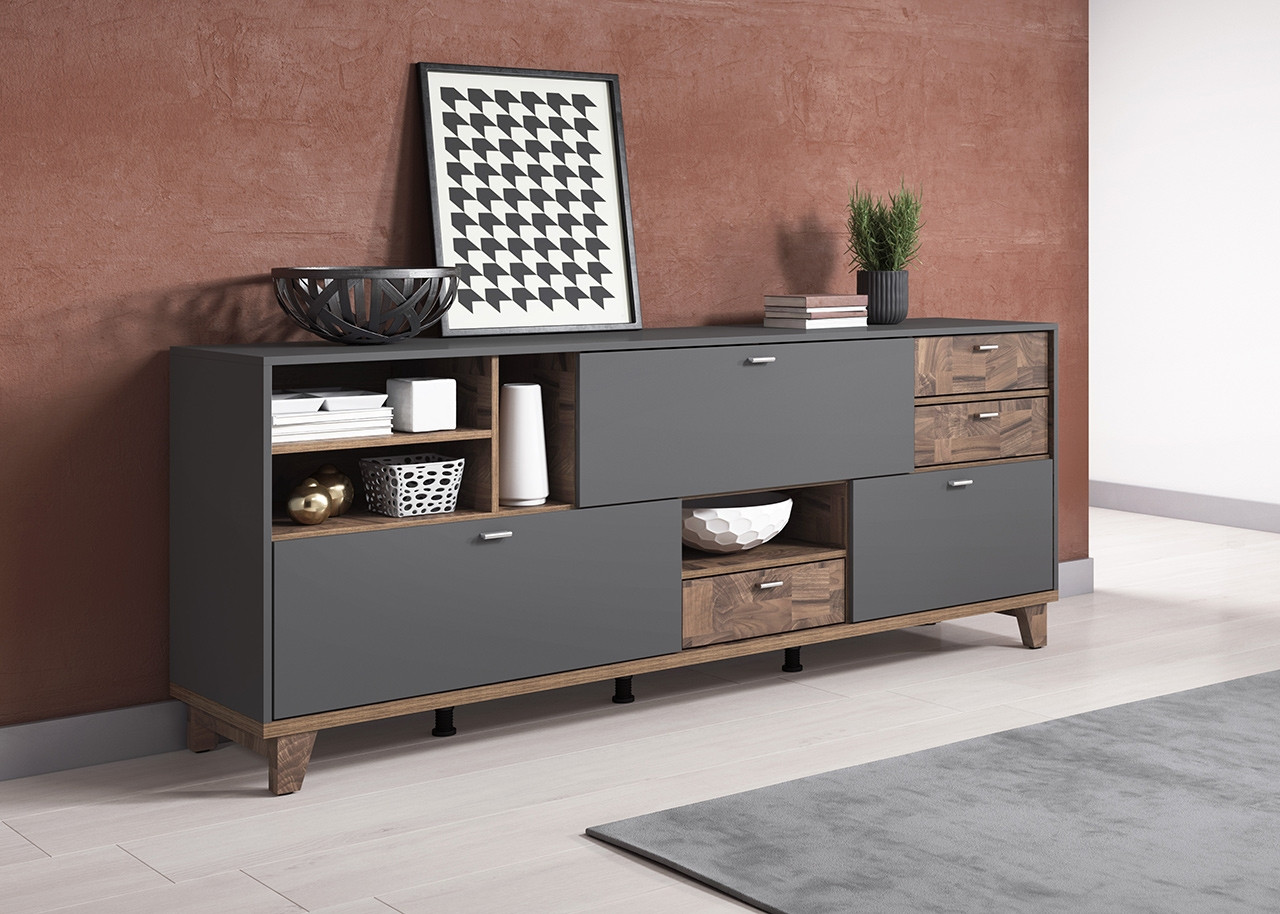 Kolekcija OSLO se odlikuje po velikem številu manjših omaric, predalov in polic, ki vam olajšajo ohranjanje reda in čistoče v dnevni sobi. Omogoča izjemno dobro organizacijo najrazličnejših predmetov, zato boste vedno vedeli, kje je kakšna stvar pospravljena.