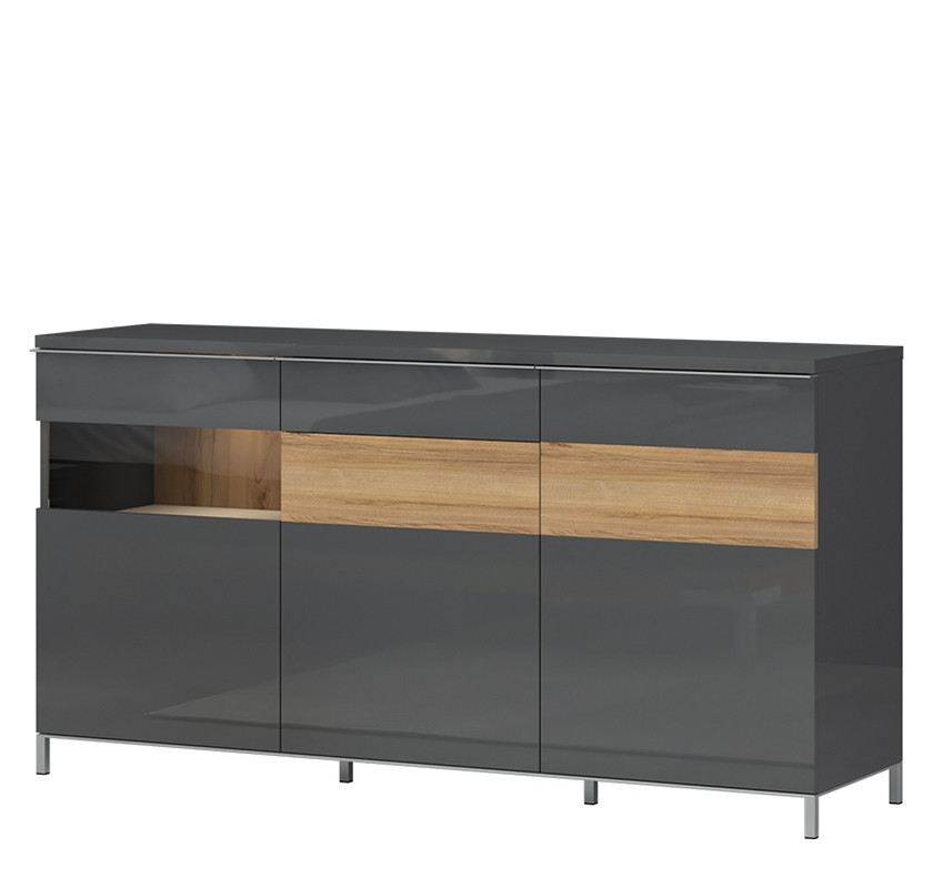 Komoda je na vseh zunanjih delih premazana z UV lakom, ki ustvari visoki sijaj. Visoki sijaj nudi pohištvu bolj eleganten in prefinjen videz, zato bo vaša dnevna soba vedno izgledala odlično in bo v središču pozornosti.