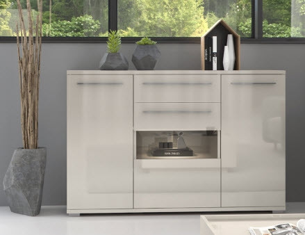 Komoda Radda Piano ima LED osvetlitev, ki izboljša izgled komode in dodatno poudari izdelke, kateri so na polički pred steklom. Razdeljena je na en predal in tri vratca za katerimi je šest polic, zato vam nudi obilo prostora za shranjevanje najrazličnejših predmetov. Zaradi univerzalnega videza lahko komodo uporabite v dnevni sobi, kuhinji, spalnici ali v predsobi. Izdelana je iz oplemenitene iverne plošče, ki je na zunanjih delih premazana z UV lakom. Je del kolekcije modularnega pohištva Radda Piano, oglejte si še ostale artikle te kolekcije!