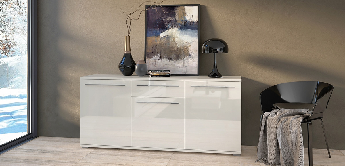 Velika in skrbno izdelana komoda, ki navdušuje z elegantnim videzom v visokem sijaju!
