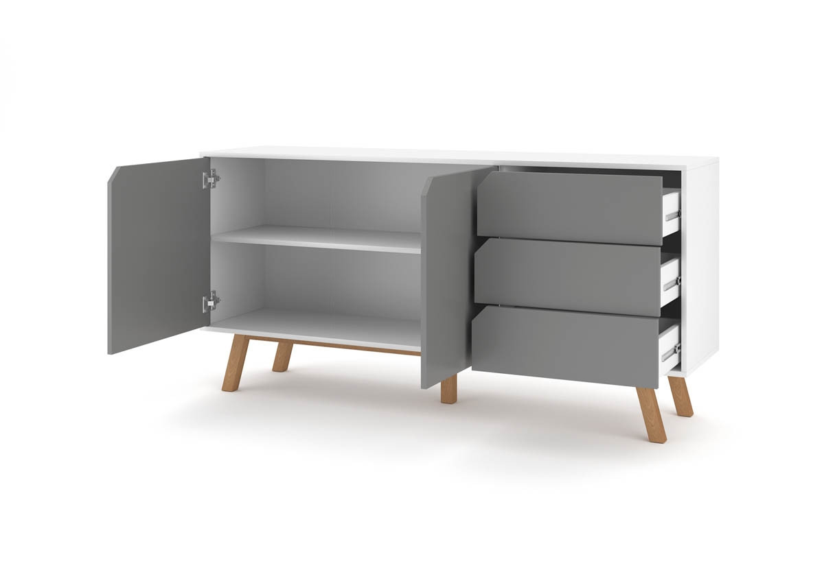 Komoda TOKIO je na voljo v kombinaciji bele in sive barve, ter vnaša estetiko v vaš prostor. Komoda je idealna za shranjevanje vsega, od oblačil do pripomočkov, in je kot nalašč za spalnice, ki potrebujejo malo dodatne osebnosti.
