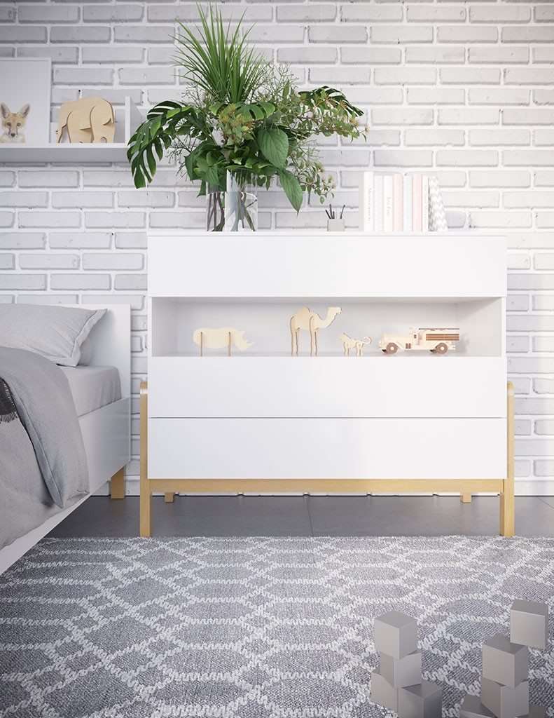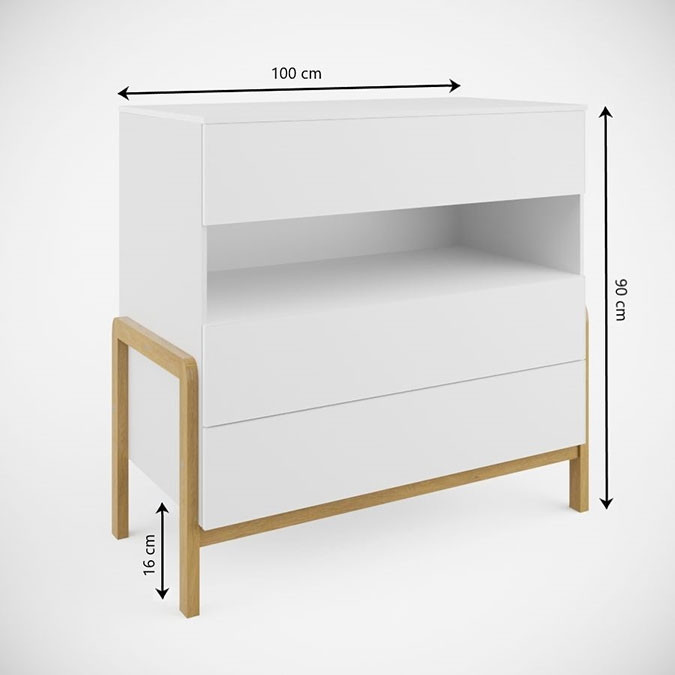 Privoščite si moderno komodo VIVAN v skandinavskem dizajnu, katero lahko uporabite v vseh prostorih vašega doma, saj je univerzalnega videza ki se povsod lepo poda. Komodo lahko uporabite v otroški ali mladinski sobi, spalnici, dnevni sobi ali predsobi za shranjevanje najrazličnejših predmetov. Komoda je razdeljena na tri prostorne predale in eno odprto polico, tako da vam nudi obilo prostora za shranjevanje in odlaganje.