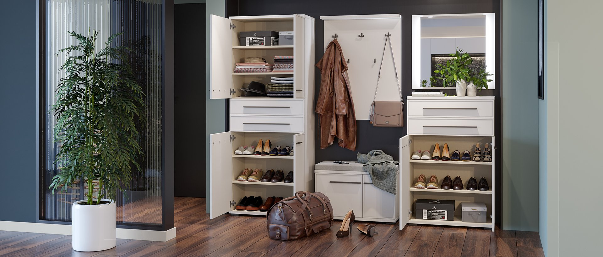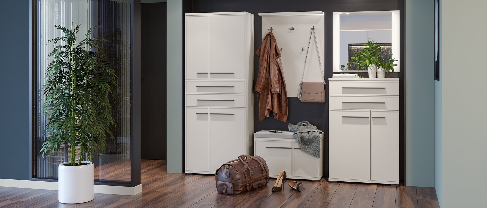 • Elegantna mat kašmirska barva se zlije z ostalimi elementi predsobe