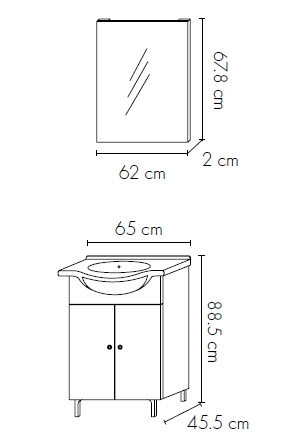 Kopalniški blok DESY je obstojni kopalniški blok v brezčasnem stilu, ki je odličen za tako manjše kot za velike kopalnice. Vključuje omarico z lakiranimi vratci v katero lahko pospravite brisače in razne higienske pripomočke, ter keramični umivalnik širine 55cm in priročno ogledalo. Omarica ima lakirana vratca ter ABS robove, kar jo naredijo bolj kvalitetno in obstojno, zato boste kopalniški blok lahko uporabljali vrsto let.
