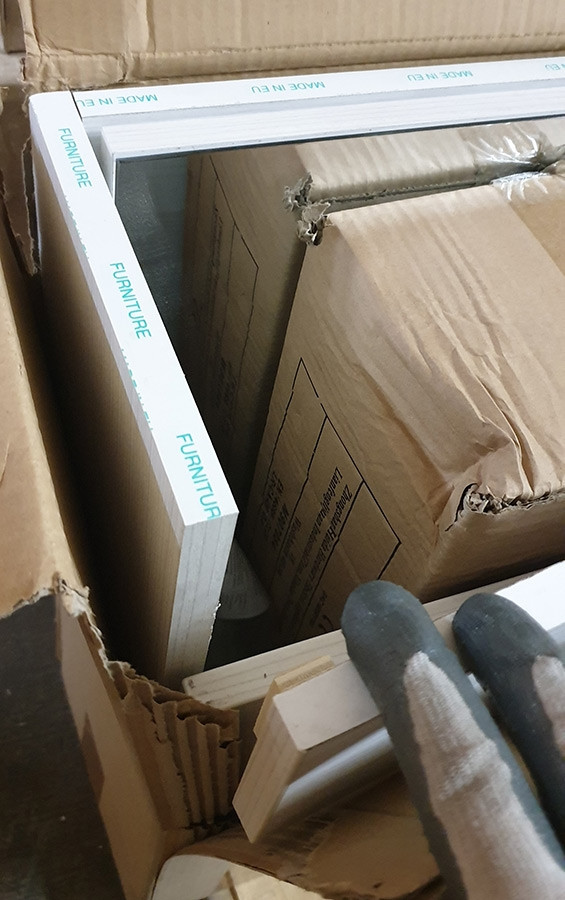 Izdelek je popolnoma nov, neuporabljen. Zaradi transporta je odstopila zgornja letev omarice na eni strani. Slika v galeriji.