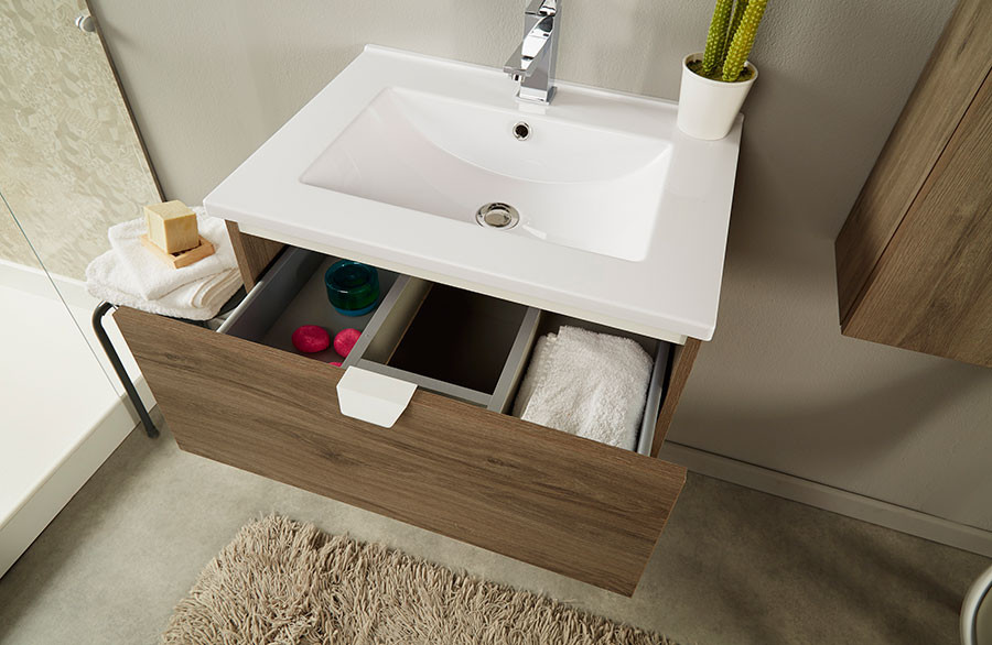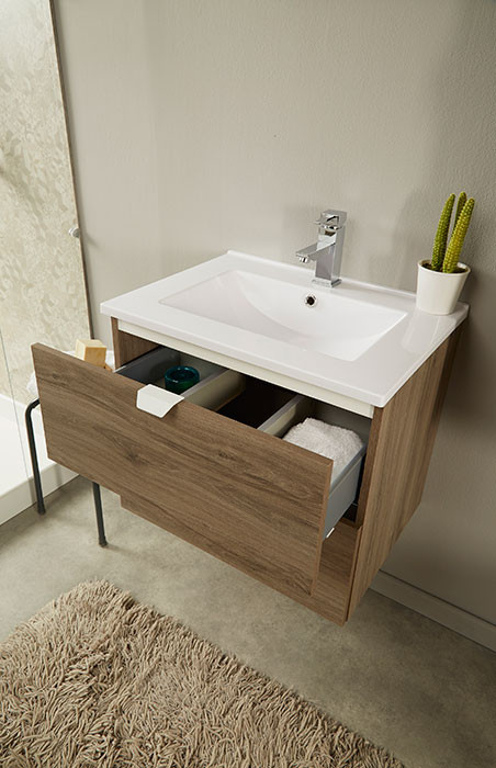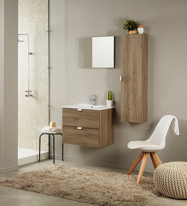 Kopalniški blok SO BOX L Sonoma hrast je kopalniški blok z dvema predaloma z mehkim zapiranjem in stransko omaro. Vključno z ogledalom, ki ga lahko montirate vertikalno ali horizontalno. Ročke in umivalnik so plastični. Fronte so iz 16mm iverala.