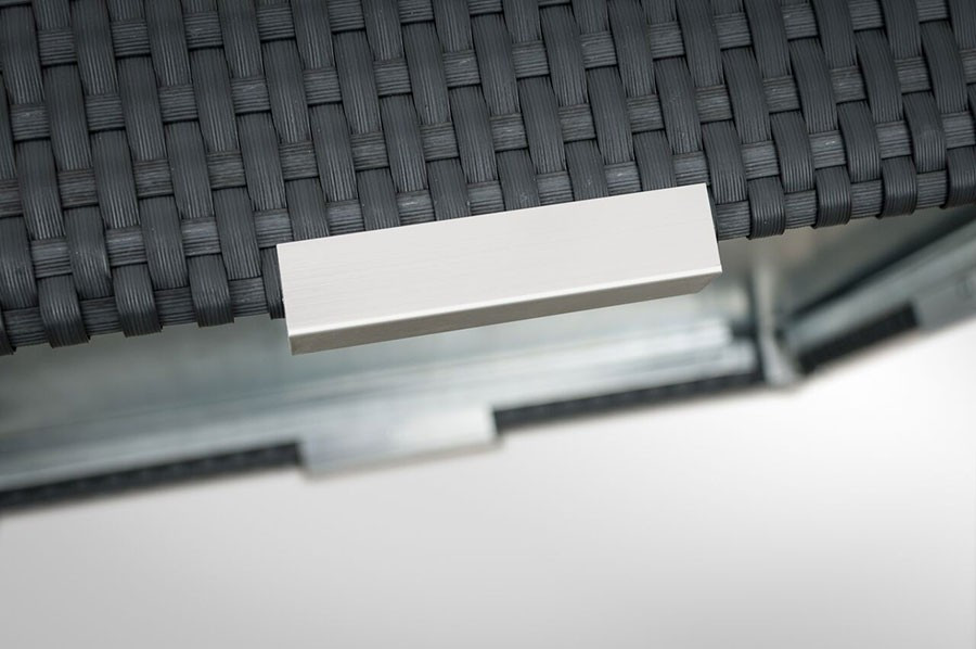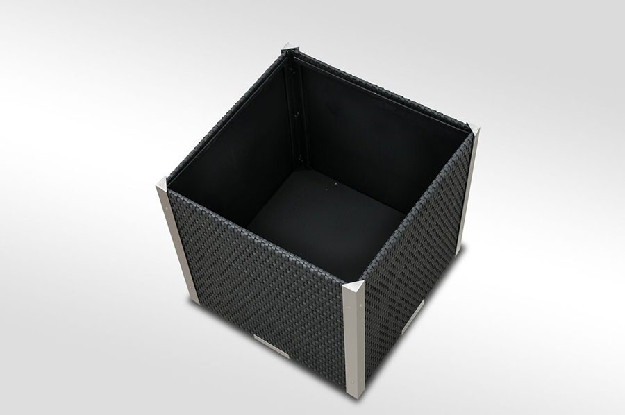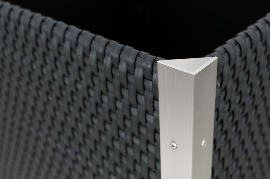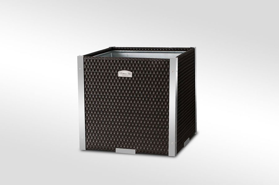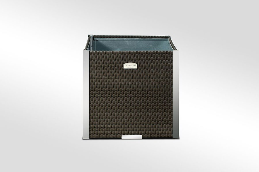 Notranjost korita je narejena iz pocinkane pločevine. Zunaj je prekrita z ratanom in končano z poliranim aluminijem. Rastline lahko daste neposredno v korito.