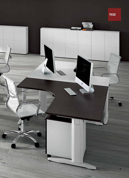 Kotna pisalna miza TK02 priznanega italjanskega proizvajalca pohištva Colombini. Ta pisalna miza je izdelana v skladu z vsemi evropskimi varnostnimi standardi in narejena iz kvalitetnih materialov.