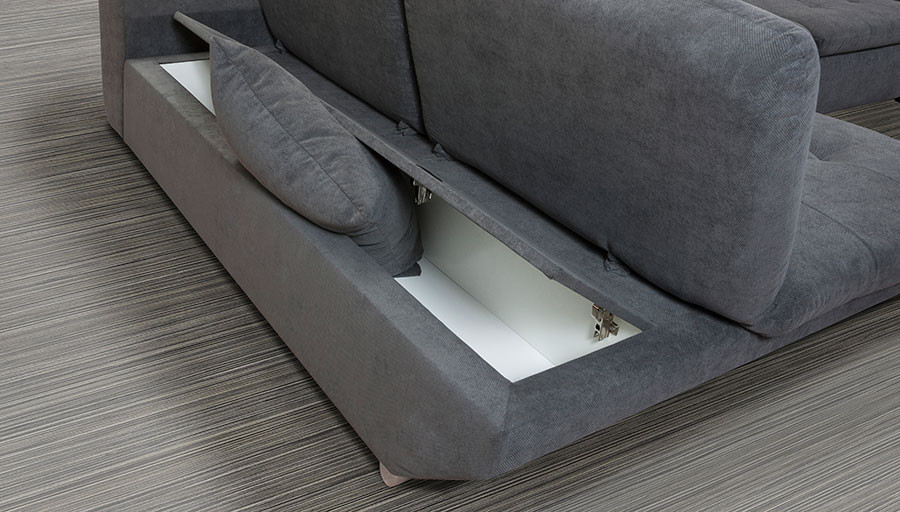 Kotna sedežna garnitura IRIS je moderna garnitura narejena iz tkanine, z dodatnim ležiščem in zabojem. Ima valovito vzmetenje in nastavljiv počivalnik za glavo. Dobavljiva je v levi in desni postavitvi.