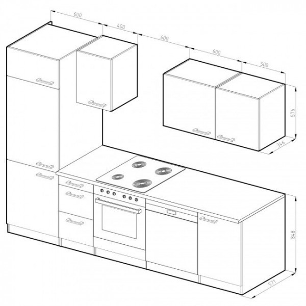 Kuhinjski blok PADRON 270 cm je širine 270 cm in je v beli barvi. Debelina korpusov (oplemenitena iverna plošča) je 16 mm, debelina front (lakirana opelemenitena iverna plošča) je 16 mm in debelina pulta je 28 mm. Kuhinja ima več različnih elementov.