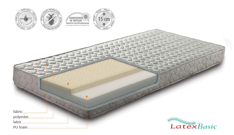 Ležišče Latex Basic (dimenzije od 60x120 do 180x200) nudi dobro razmerje med kvaliteto in ceno. Ležišče debeline 16 cm je sestavljeno iz plasti lateksa in PU pene. Ležišče je narejeno iz visokokaovostnega lateksa italijanske proizvodnje. Lateks je znan kot antialergijski, antibakterijski in ekološki material. Ležišče je primerno tudi kot otroško ležišče, saj so na voljo tudi v dimenzijah 60x120 in 70x140.