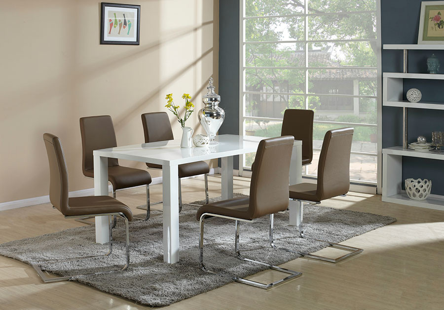 Miza BOMBINA II je jedilna miza iz MDF materiala v beli barvi visokega sijaja. Njene enostavne linije jo naredijo primerno za vsako jedilnico. Debelina plošče 4 cm, debelina nog 8 cm.