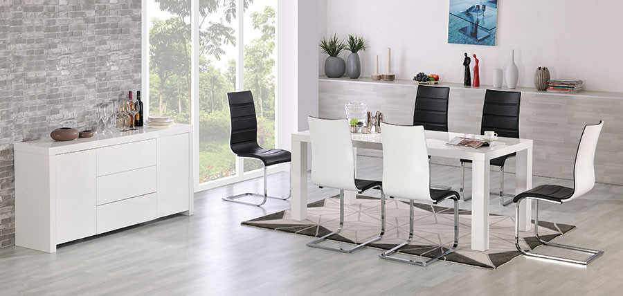 Miza URBAN II je narejena iz MDF materiala v visokem sijaju. Odbija svetlobo in daje površini pohištva živahen videz. Debelina plošče 5 cm, debelina nog 10 cm.