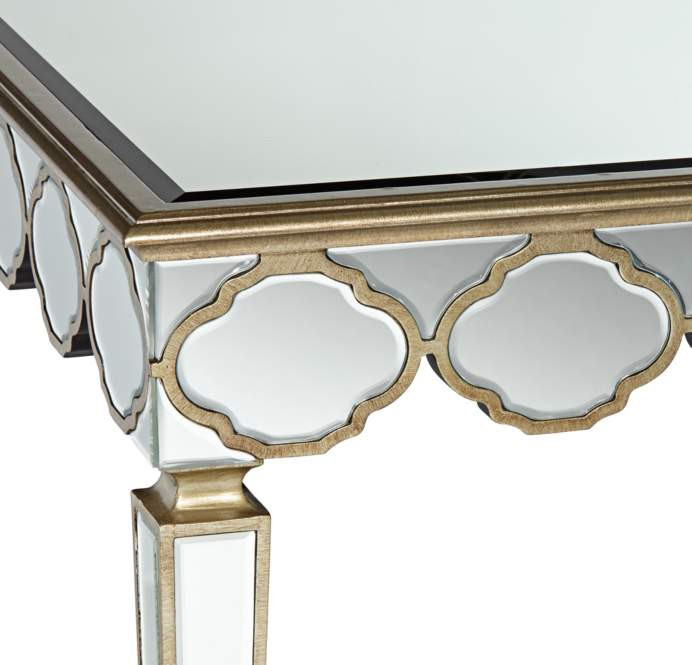 Prestižna in elegantna jedilna miza ROVNER GLAM pritegne pozornost vsakega gosta in ustvari elegantno jedilnico. Izdelana je iz kvalitetnega MDF materiala in ogledal, ki so barvana v srebrno barvo. Linije in detajli so poudarjeni z zlato barvo, ki ustvari občutek klasične elegance. Oglejte si še ostale izdelke iz linije GLAM in ustvarite enotno podobo elegance in prestiža v vašem domu.