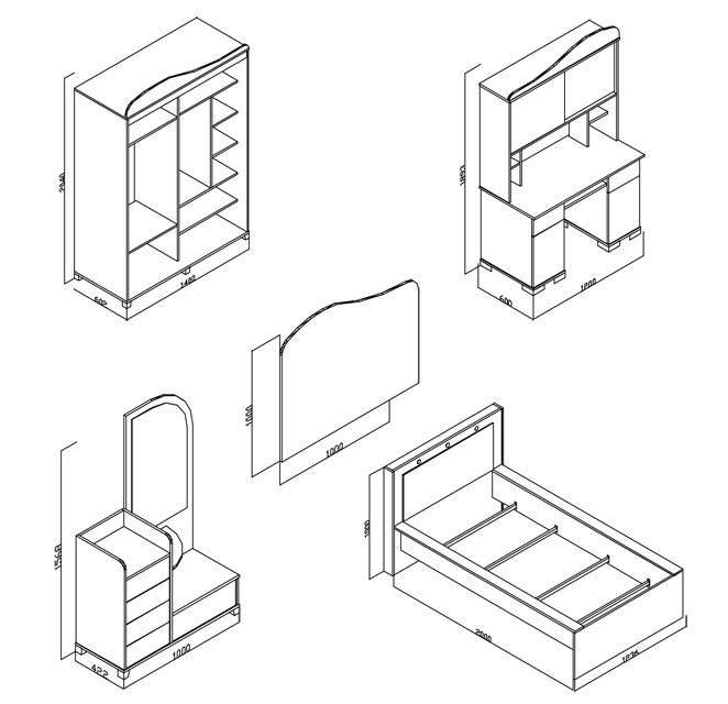 Mladinska soba Vizyon White vsebuje sledeče elemente:
