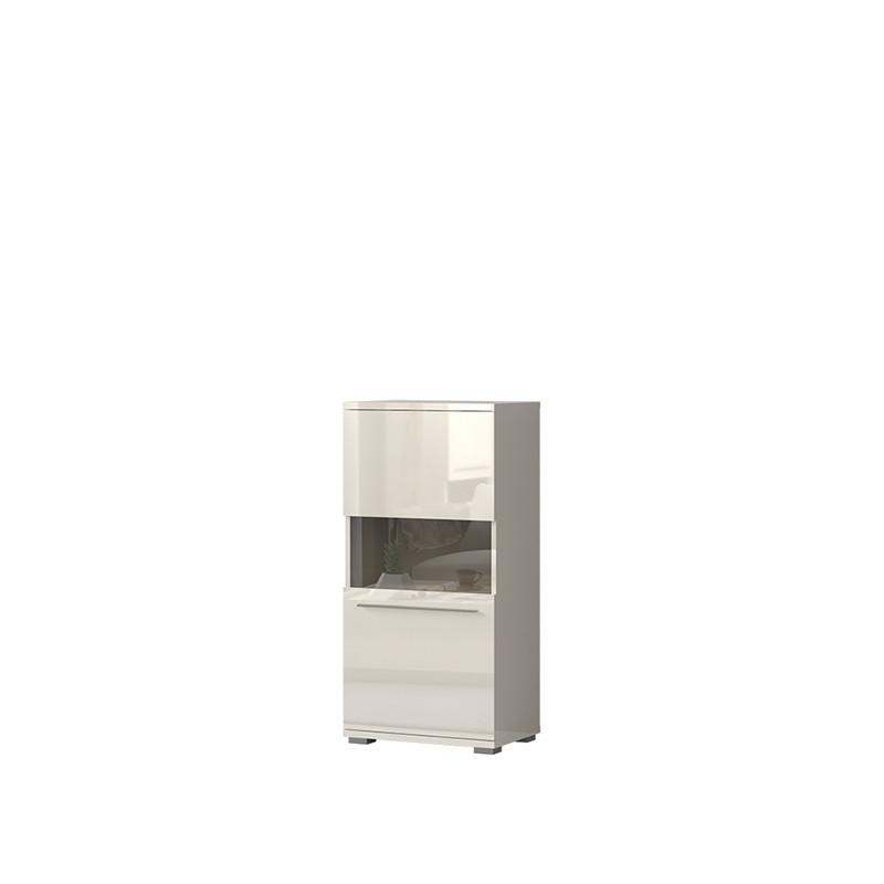 Vitrina Radda Piano je priročna vitrina, ki vam ne zavzame veliko prostora in katero lahko zaradi univerzalnega videza uporabite v različnih sobah vašega doma. Na voljo je v bež barvi v visokem sijaju. Vključuje LED osvetlitev in soft-close mehanizem, ki omogoča tiho zapiranje in preprečuje nastajanje poškodb in obrabe. Vitrina ima ena vratca in tri notranje police. Ima 2 možni postavitvi in možnost montaže vratc na levo ali desno stran. Je del kolekcije modularne dnevne sobe Radda Piano, ki ima 40 različnih artiklov med katerimi lahko prosto izbirate in si ustvarite sanjsko in unikatno dnevno sobo!