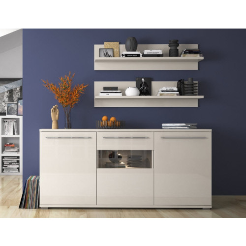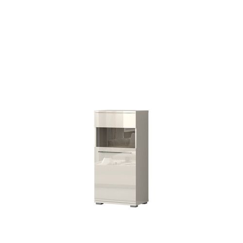 Vitrina Radda Piana se zaradi univerzalnega in preprostega videza lahko uporabi v dnevni sobi, kuhinji, jedilnici ali na hodniku. Razdeljena je na dva dela, v vsakem je dodatna polica, kamor lahko ogližite razne manjše predmete, katere želite imeti dobro organizirane. Vsebuje soft-close mehanizem za tiho zapiranje. Na voljo je v bež barvi v visokem sijaju. Izdelana je iz oplemenitene iverne plošče, ki je na zunanjih delih vitrine premazana z UV lakom. Je del kolekcije modularne dnevne sobe Radda Piano, ki ima več kot 40 artiklov med katerimi lahko prosto izbirate in si ustvarite unikatno dnevno sobo!