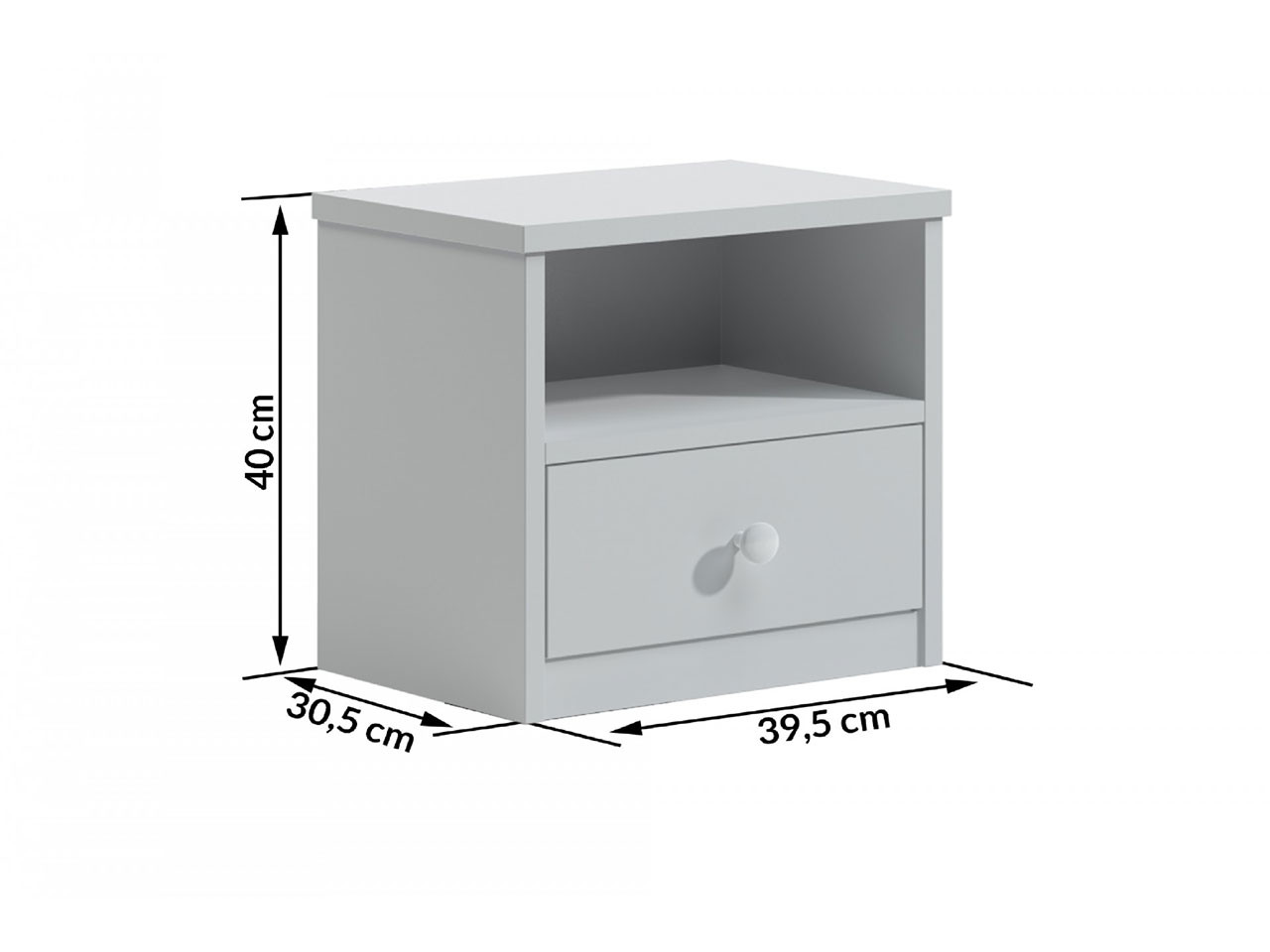 Nočna omarica DREAMY je priročna in funkcionalna omarica, ki nudi otroku dragoceni dodatni prostor za shranjevanje in odlaganje malenkosti, katere želi imeti na dosegu roke. Nočna omarica DREAMY ima odprto polico in en zaprt predal. Omarica je del otroške sobe DREAMY, ki je na voljo v štirih različnih barvah in s številnimi različnimi motivi!
