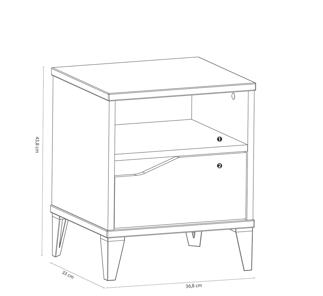 Nočna omarica v skandinavskem stilu GENIUS je razdeljena na predal in dve odprti polici, kamor lahko odložite nočno lučko, kozarec vode in otrokovo najljubšo knjigo. Omarica vam nudi dodatni prostor za shranjevanje malenkosti, katere bodo otroku vedno na dosegu roke.
