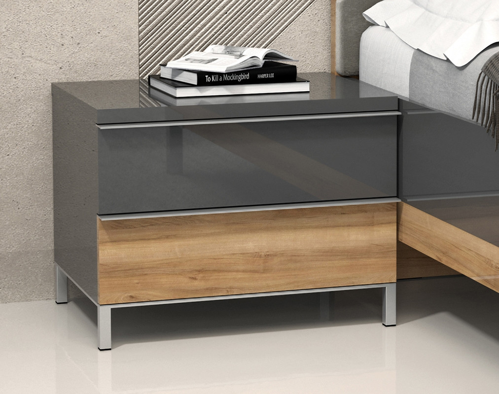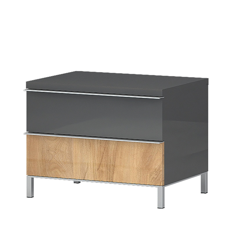 Nočna omarica KALLA ONYX vam nudi dva predala s funkcijo tihega zapiranja ter odlagalno površino, na katero lahko odložite lučko, telefon in kozarec vode, v predala pa lahko pospravite predmete, katere želite imeti vedno pri roki. Na voljo je v moderni barvni kombinaciji pacifičnega oreha in antracita v visokem sijaju, ki nudi pohištvu bolj eleganten videz. Zunanji deli so premazani z UV lakom, ki je bolj odporen na vlago, praske in poškodbe kot standardni laki, zato bo vaše pohištvo dlje časa lepo ohranjeno!