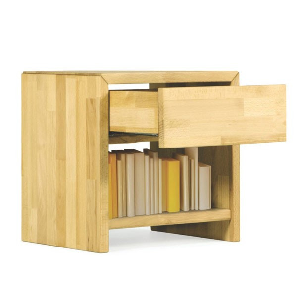 Nočna omarica LAVANDA je iz masivnega oljenega bukovega lesa s poličko. Preverite še posteljo iz tega programa.