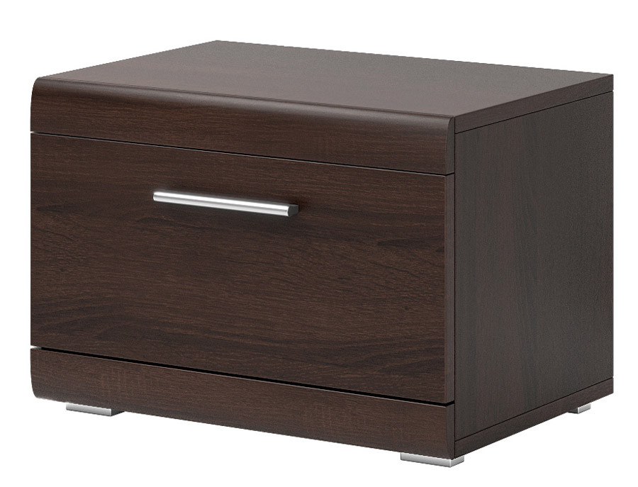 Nočna omarica je izdelana iz visoko kvalitetne iverne plošče, ki je oplemenitena z melaminsko folijo. Material je izredno trpežen in nezahteven za vzdrževanje. Odlikuje ga barvna stabilnost in odpornost na mehanske poškodbe.