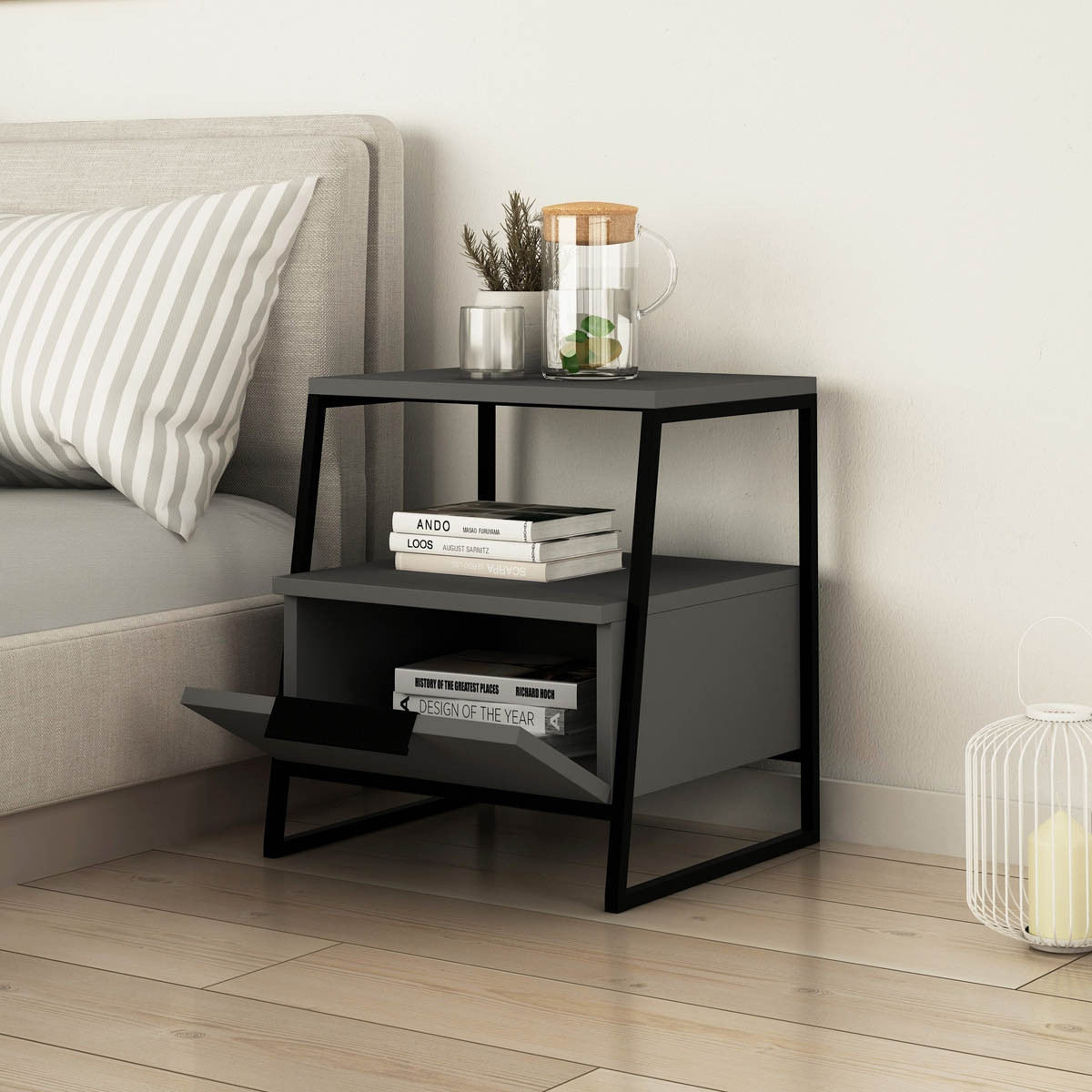 Nočna omarica PAL v antracit barvi je odličen dodatek k vsaki spalnici. S svojo prefinjeno barvo in zanimivim dizajnom je popolna kombinacija. Omarica nudi dovolj prostora za shranjevanje knjig, revij, mobilnih telefonov ali drugih predmetov, ki jih potrebujete za mirno spanje.