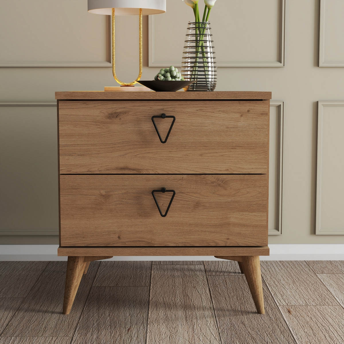 Omarica VERSA vključuje dva prostorna predala, ki vam omogočata shranjevanje vaših najljubših knjig in osebnih predmetov. Sodobno oblikovane nogice omogočajo, da ta nočna omarica stoji varno in stabilno. Noge izgledajo elegantno in dodajo sodoben pridih k omarici.