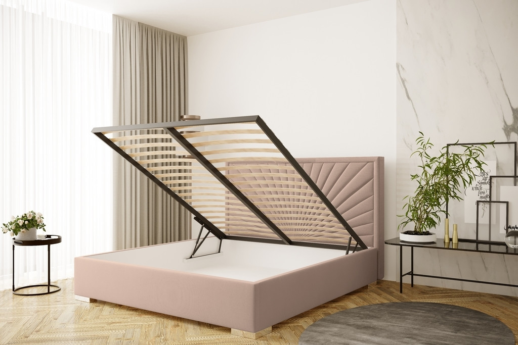 Oblazinjena postelja CULTU ima dvižni mehanizem, ki se z lahkoto uporablja in vam nudi izkoristek celotnega prostora pod posteljo za shranjevanje posteljnine, letnih oblačil, vzglavnikov in odej ter ostalih poljubnih predmetov. Vaše omare bodo zato ostale lepo urejene in ne bodo prenatrpane. Predal pod posteljo je razdeljen na dva dela in je visok približno 14 cm.