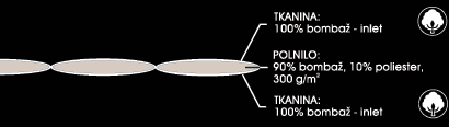 Polnino: 90% bombaž in 10% poliester; 300 g/m2 Bombažno polnilo je oplemeniteno s poliestrnimi vlakni