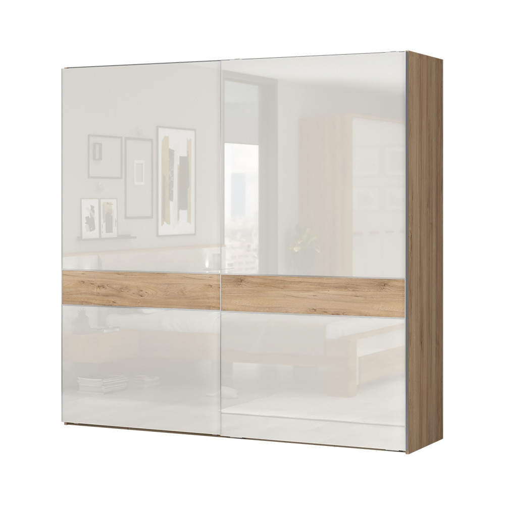 Kolekcija KALLA GALA je na voljo v kombinaciji pacifičnega oreha in bež barve v visokem sijaju, ki omogoča, da se svetloba odbija od pohištva in spalnica posledično izgleda večja, bolj svetla in tudi bolj čista. Spanje in počitek bosta v tej spalnici zato pravi užitek!