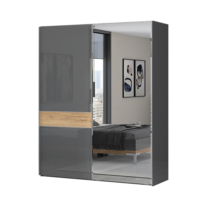 Želite elegantno in funkcionalno spalnico? Garderobna omara KALLA ONYX je odlična izbira za vas, saj je na voljo v elegantni kombinaciji pacifičnega oreha in antracita v visokem sijaju, ima veliko priročno ogledalo, v notranjosti pa prejmete kar 6 polic in 2 palici za obešanje, zato bodo vaša oblačila in modni dodatni vedno lepo organizirani! Omara ima funkcijo tihega zapiranja za lažjo vsakodnevno uporabo, zunanjost je pa premazana z UV lakom, ki je bolj odporen na vlago, praske in poškodbe, zato bo vaše pohištvo dlje časa ostalo lepo ohranjeno. Oglejte si še ostale artikle iz kolekcije KALLA ONYX za elegantno in stilsko dovršeno spalnico!