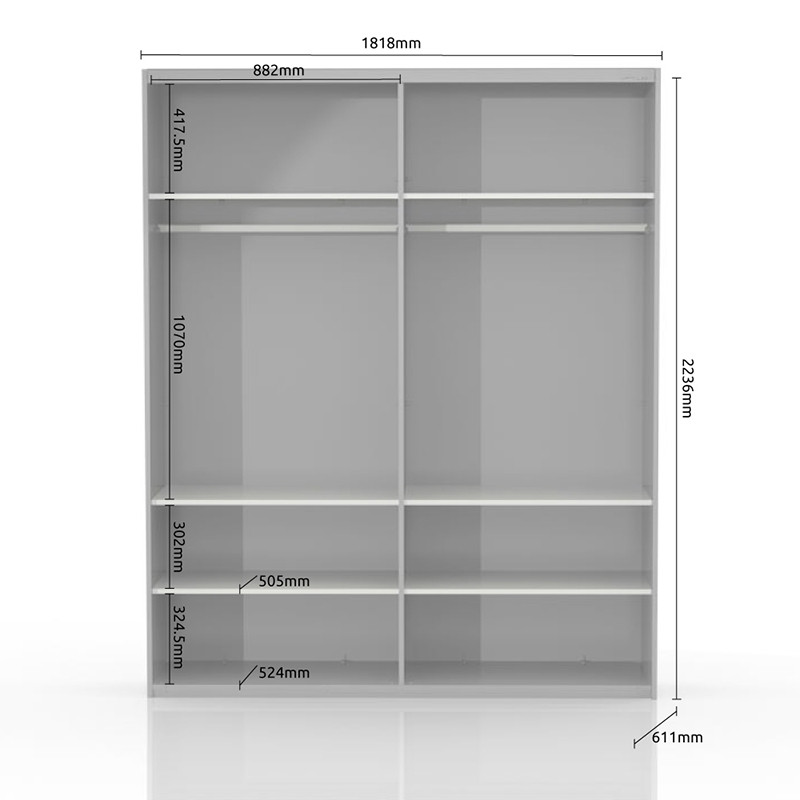 Garderobna omara KALLA ONYX je del kolekcije KALLA ONYX, ki ima na voljo številne različne elemente, ki vam nudijo obilo prostora za shranjevanje oblačil in modnih dodatkov, zato bo vaša spalnica vedno videti odlično! Spalnico lahko naročite po posameznih elementih in si jo tako maksimalno prilagodite svojemu domu.