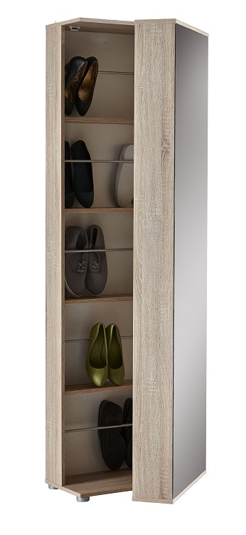 Omara za čevlje BALLERINA vam bo nudila prostor za kar 20 parov čevljev in se bo s svojim klasičnim dizajnom odlično podala v vsako predsobo. Omara je narejena iz oplemenitene iverne plošče v barvi hrasta in ima nameščeno tudi ogledalo.