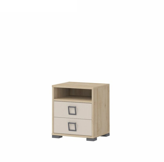 Otroška nočna omarica Kiki je del kolekcije otroških spalnic Kiki, ki je na voljo v 4-ih različnih barvnih kombinacijah. Vašemu otroku nudi prostor za nočno lučko, knjige, mobilni telefon in podobne predmete. Barvno kombinacijo si lahko izberete sami in jo prilagodite vaši otroški sobi. Ima dva predala. Izdelana je iz oplemenitene iverne plošče.