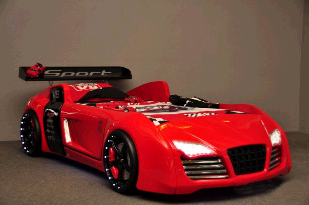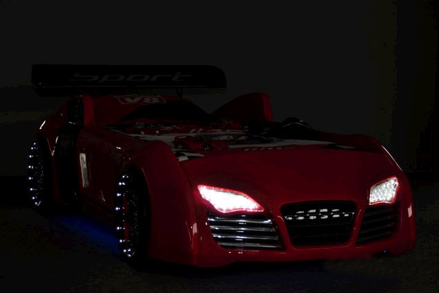 Otroška postelja TURBO V-8 (90x190) - rdeča je namenjena vsem nadobudnim dirkačem, ki bodo v svet sanj skoraj dobesedno oddrveli. Na voljo je v beli barvi in v paketu prejmete tudi daljinski upravljalec, s katerim boste lahko regulirali žmiganje luči in ostale glasovne efekte, ki jih postelja nudi.