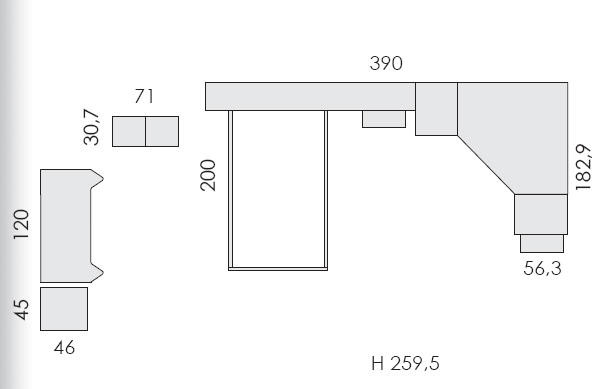 - Kompozicija polic Scaletta pritrjen na steno(Š:225, G:28,5, V:195,5)